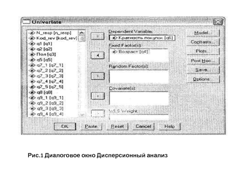 Слайд 17Рис.1 Диалоговое окно Дисперсионный анализ