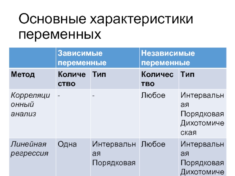 типа переменных (метрических и не метрических).