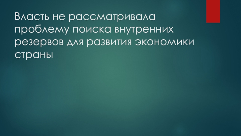 Слайд 16Власть не рассматривала проблему поиска внутренних резервов для развития экономики