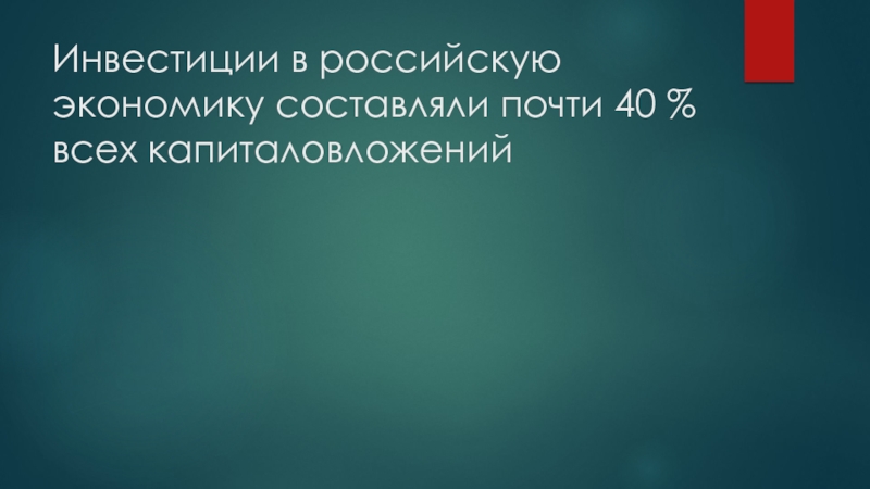 Слайд 13Инвестиции в российскую экономику составляли почти 40 % всех капиталовложений