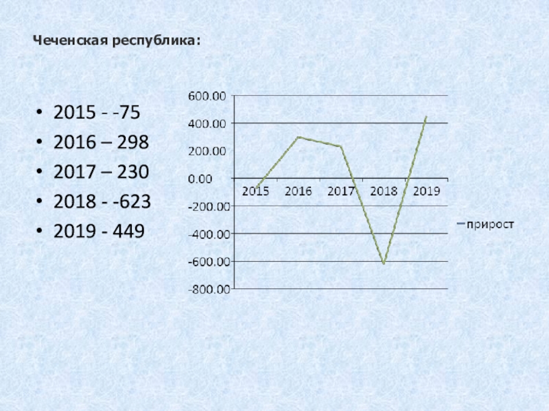 Чеченская республика: 2015 - -752016 – 2982017 – 2302018 - -6232019 - 449