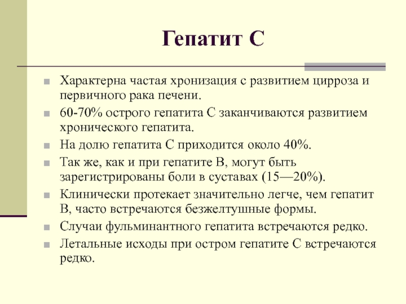 60-70% острого гепатита С заканчиваются развитием хронического гепатита.