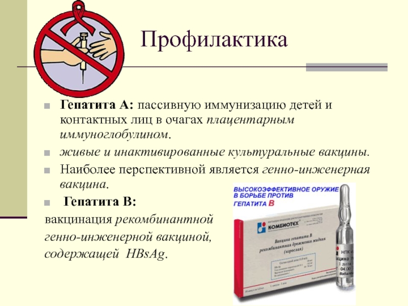 Гепатита А: пассивную иммунизацию детей и контактных лиц в очагах
