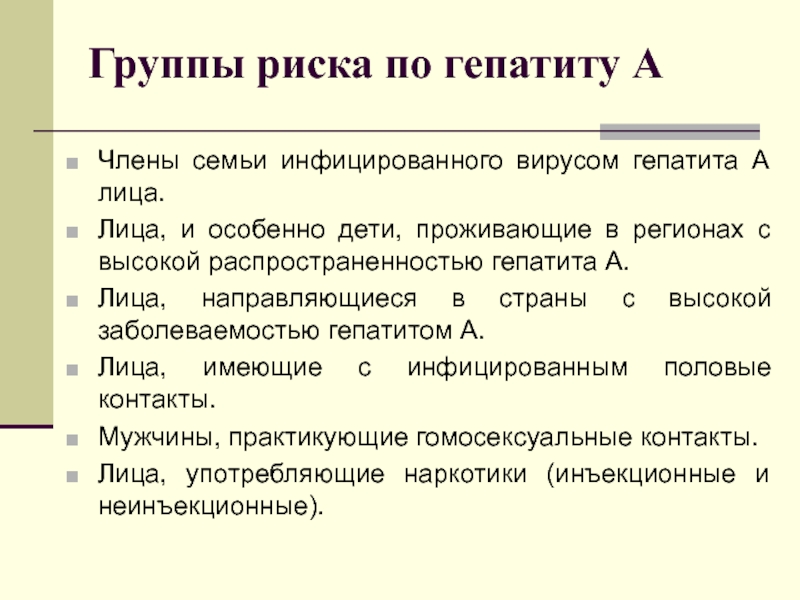 Лица, направляющиеся в страны с высокой заболеваемостью гепатитом А.