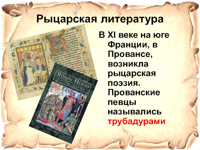 рыцарская поэзия. Прованские певцы назывались трубадурами