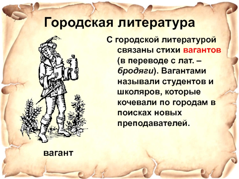 лат. – бродяги). Вагантами называли студентов и школяров, которые кочевали