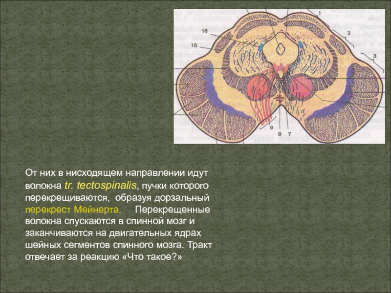 Слайд 12От них в нисходящем направлении идут волокна tr. tectospinalis, пучки