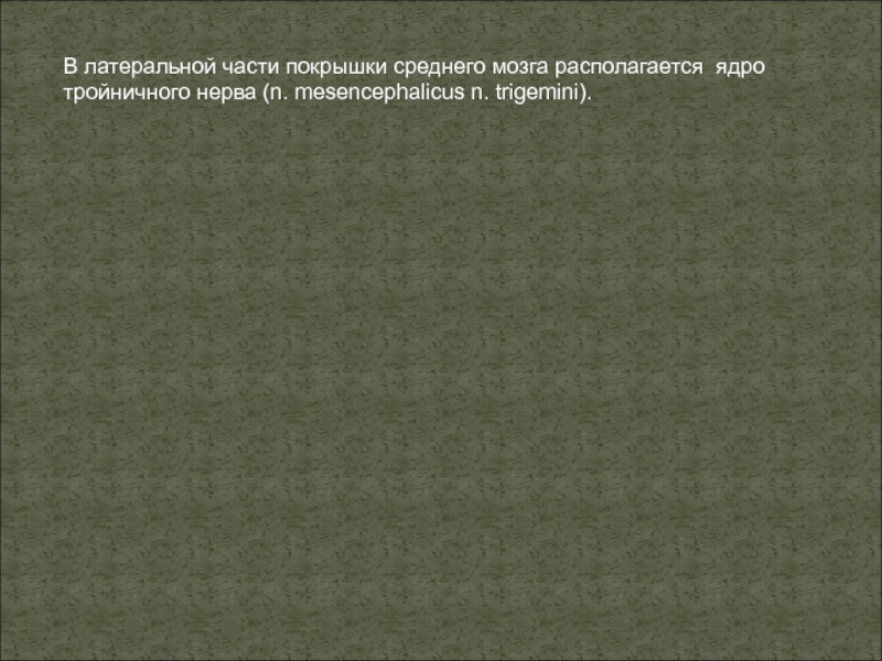 Слайд 10В латеральной части покрышки среднего мозга располагается ядро тройничного нерва