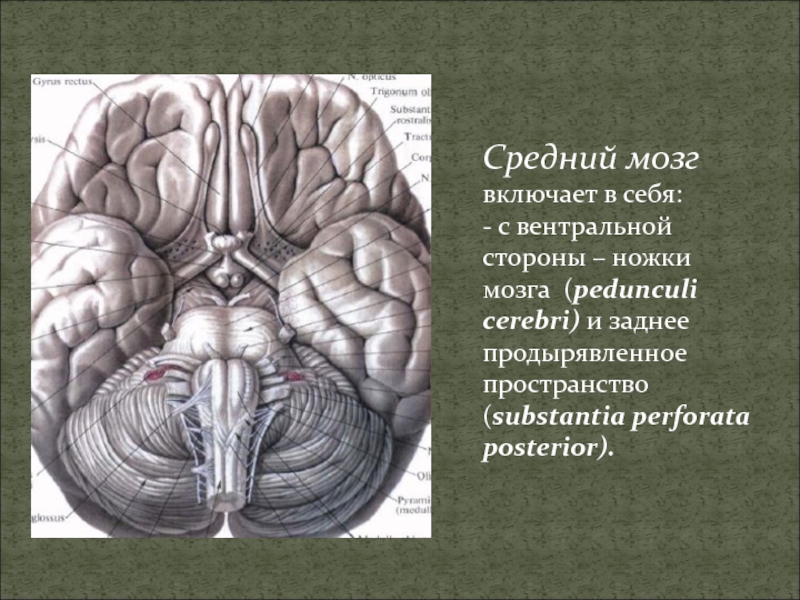 мозга (pedunculi cerebri) и заднее продырявленное пространство (substantia perforata posterior).