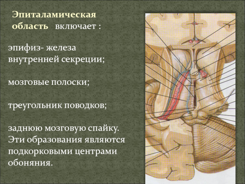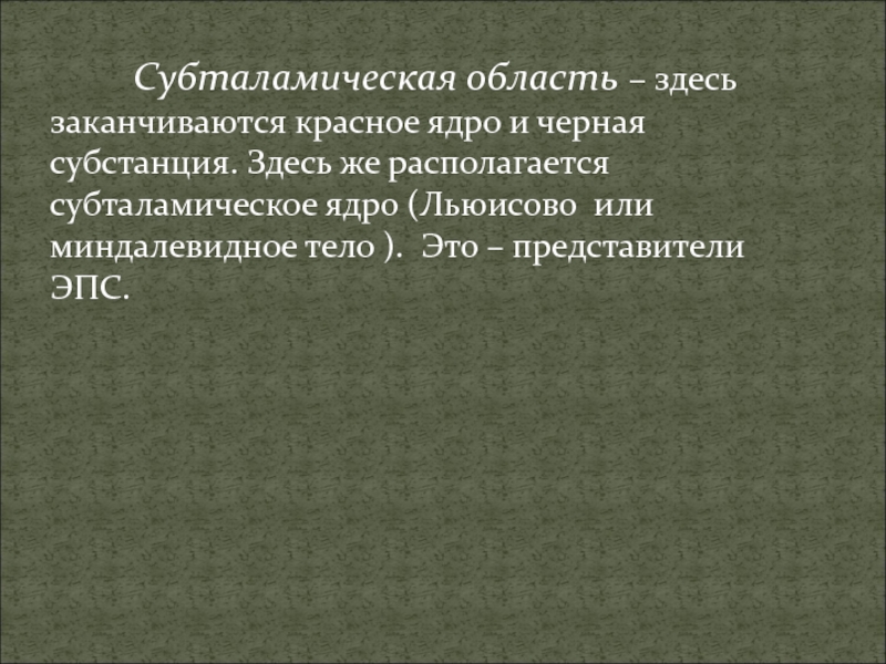 Слайд 31 Субталамическая область – здесь заканчиваются