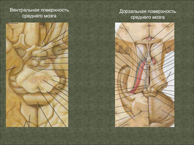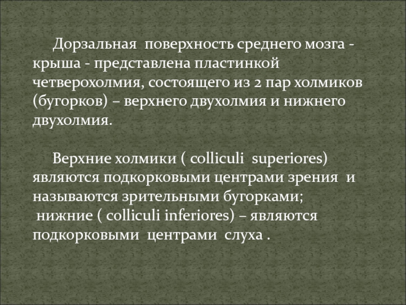 Слайд 4 Дорзальная поверхность среднего мозга - крыша