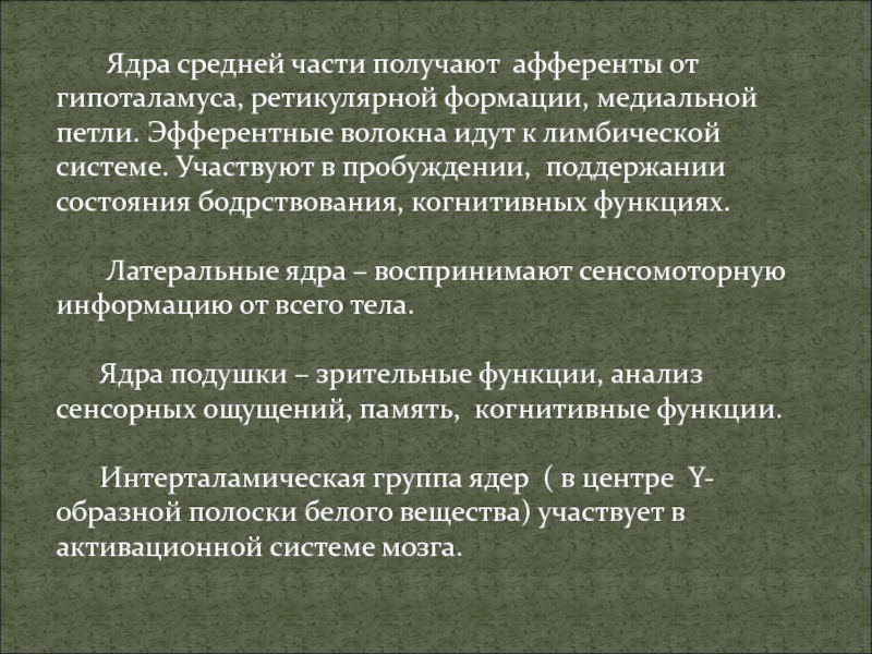 Слайд 24Таламус – это парное образование, состоящее из 40-150 ядер. Медиальные