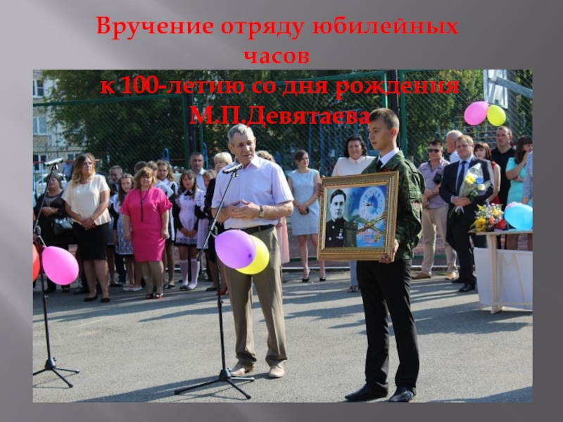 Вручение отряду юбилейных часов к 100-летию со дня рождения М.П.Девятаева