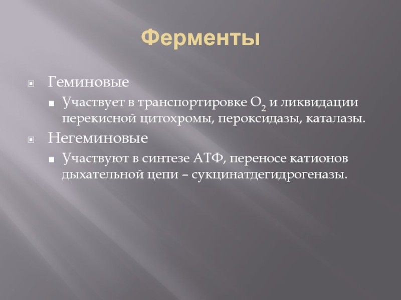Участвует в транспортировке O2 и ликвидации перекисной цитохромы, пероксидазы,