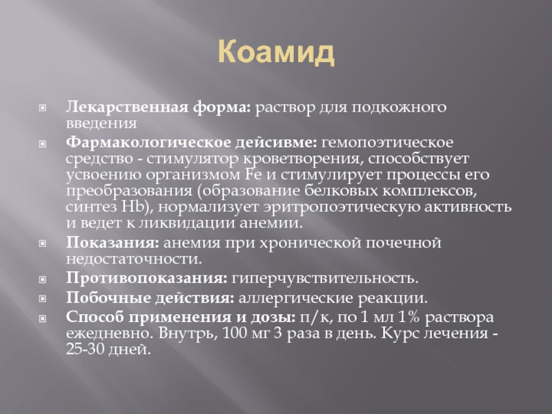 Фармакологическое дейсивме: гемопоэтическое средство -