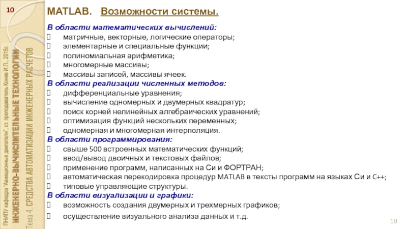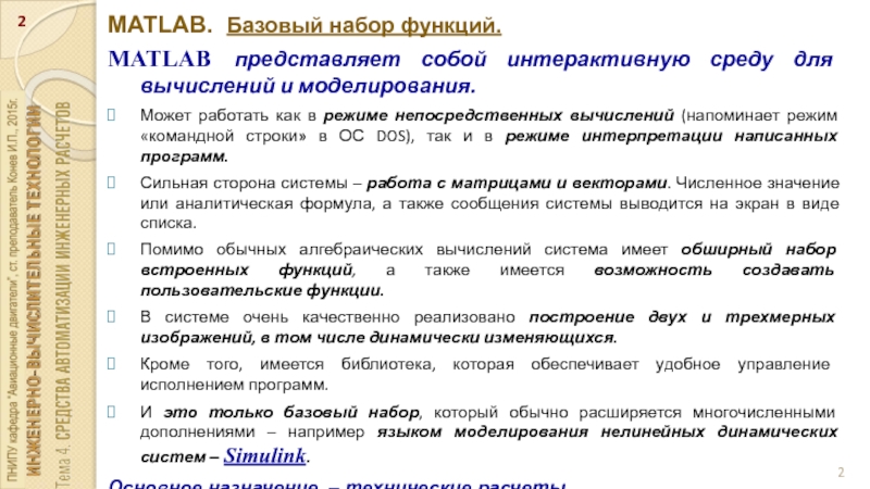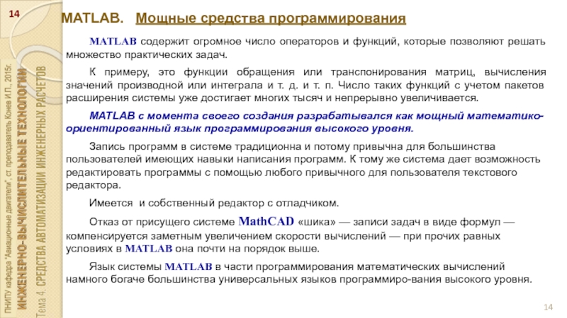 MATLAB с момента своего создания разрабатывался как мощный математико-ориентированный язык программирования высокого уровня.