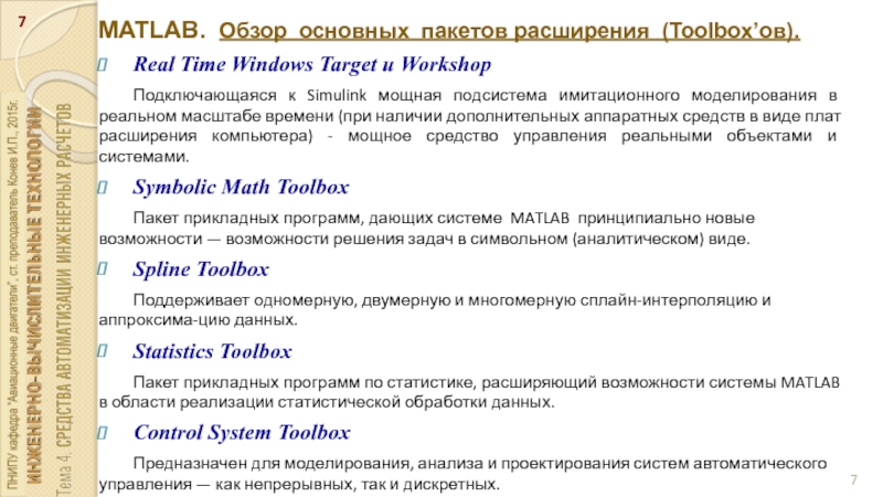 Слайд 7MATLAB. Обзор основных пакетов расширения (Toolbox’ов).