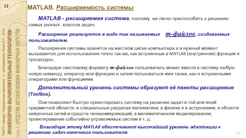 Расширения системы хранятся на жестком диске компьютера и в нужный момент вызываются для использования точно так же, как встроенные в MATLAB (внутренние) функции и процедуры.