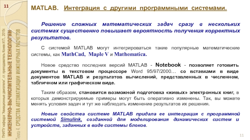 Слайд 11MATLAB. Интеграция с другими программными системами.