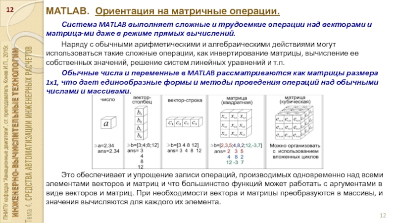 Слайд 12MATLAB. Ориентация на матричные операции.