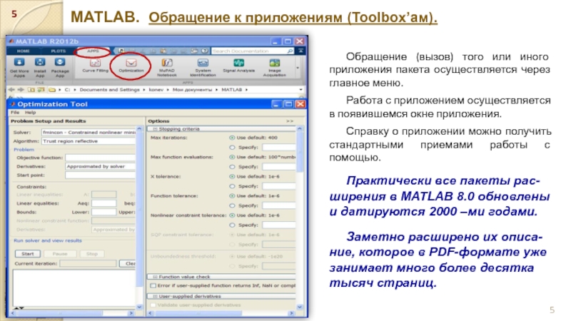 Слайд 5MATLAB. Обращение к приложениям (Toolbox’ам).