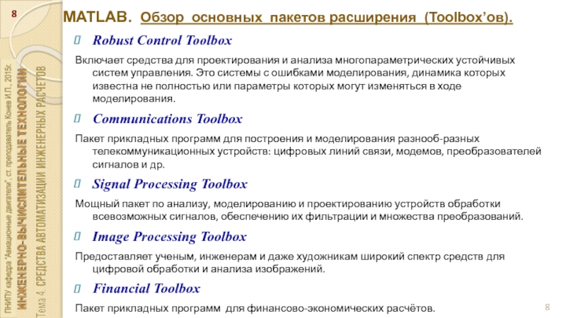 Слайд 8MATLAB. Обзор основных пакетов расширения (Toolbox’ов).