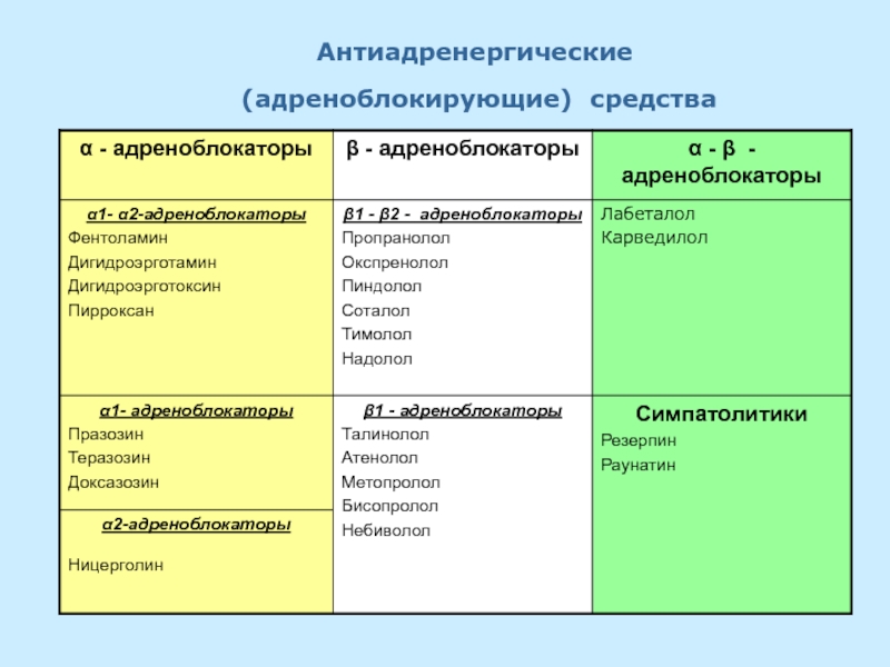 Слайд 9Антиадренергические (адреноблокирующие) средства