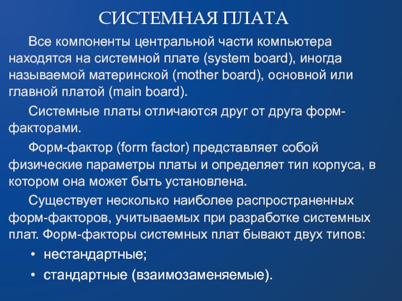 Периферийные устройства связывают центральную часть с внешним миром. Список