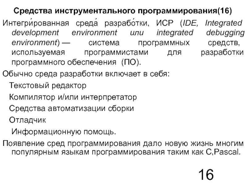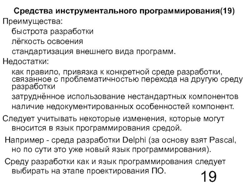 Появление сред программирования дало новую жизнь многим популярным языкам программирования таким как С,Pascal.