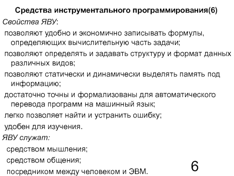 Создание ЯВУ позволило предоставить программистам средства значительно более гибкой и разнообразной структуры.