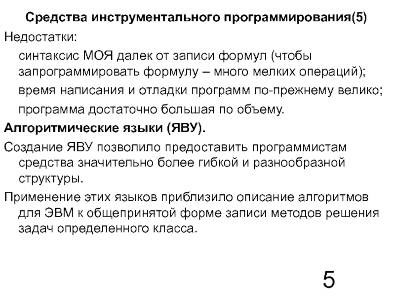 Применение этих языков приблизило описание алгоритмов для ЭВМ к общепринятой форме записи методов решения задач определенного класса.