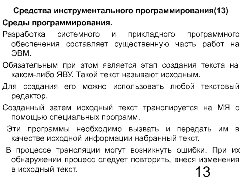 Созданный затем исходный текст транслируется на МЯ с помощью специальных программ.