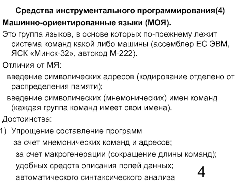 которых по-прежнему лежит система команд какой либо машины (ассемблер ЕС