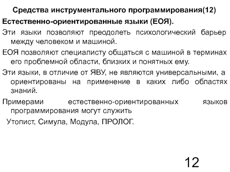 Эти языки, в отличие от ЯВУ, не являются универсальными, а ориентированы на применение в каких либо областях знаний.