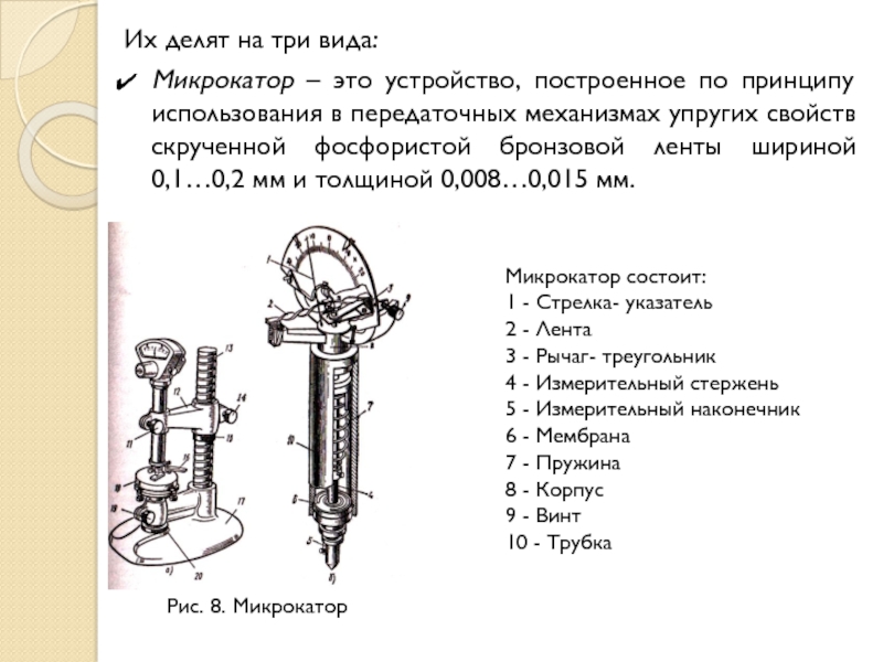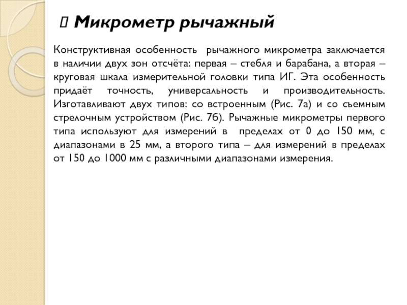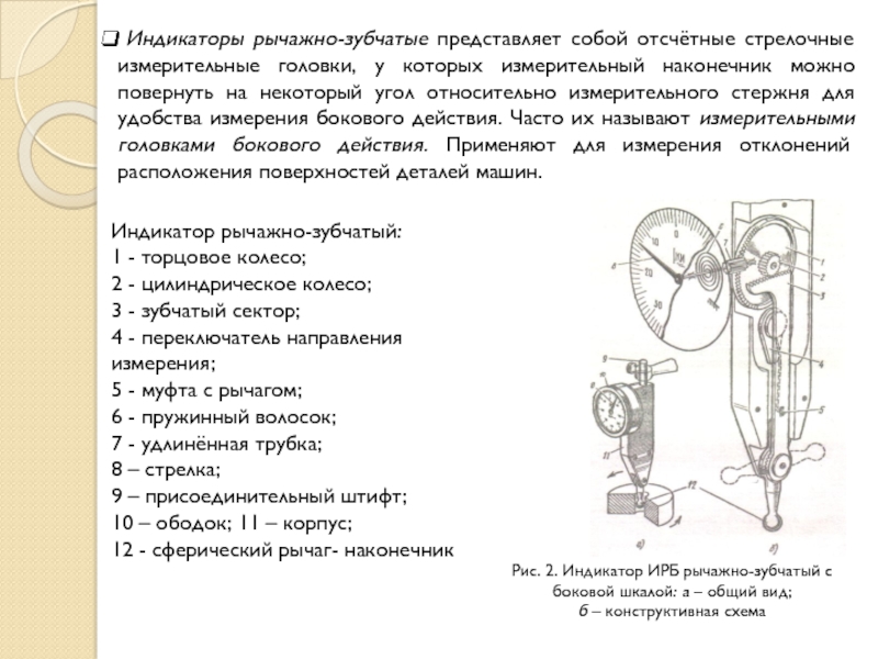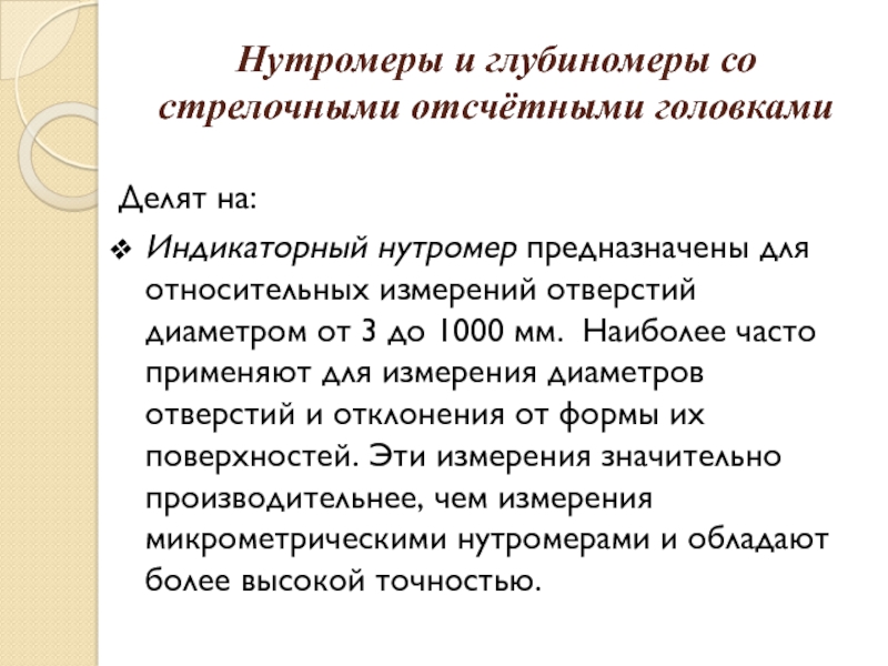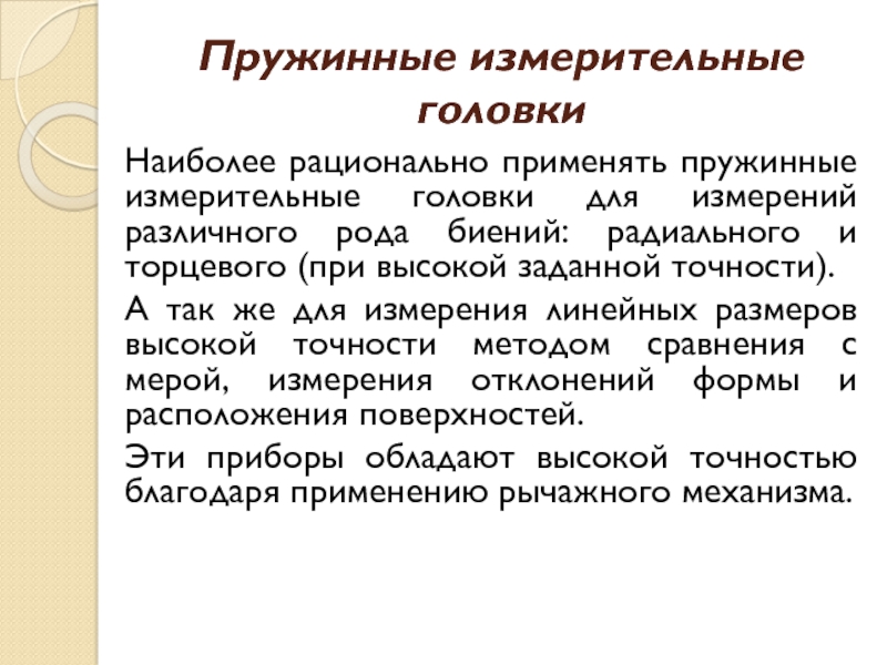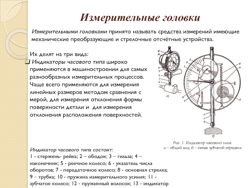 пружинные головки. Индикаторные нутромеры. Рычажные микрометры. Устройства, назначение, область применения