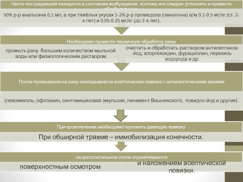 Если у пострадавшего повреждена конечность, ее необходимо иммобилизировать, чтобы уменьшить всасывание яда.