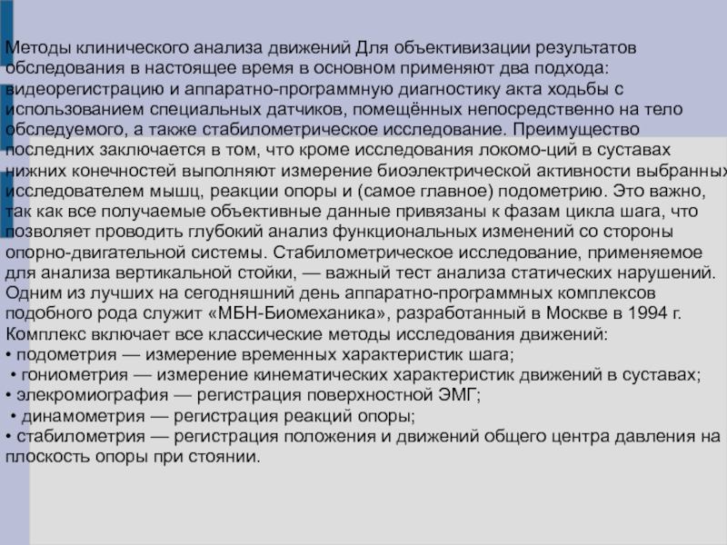 Слайд 16Методы клинического анализа движений Для объективизации результатов обследования в настоящее