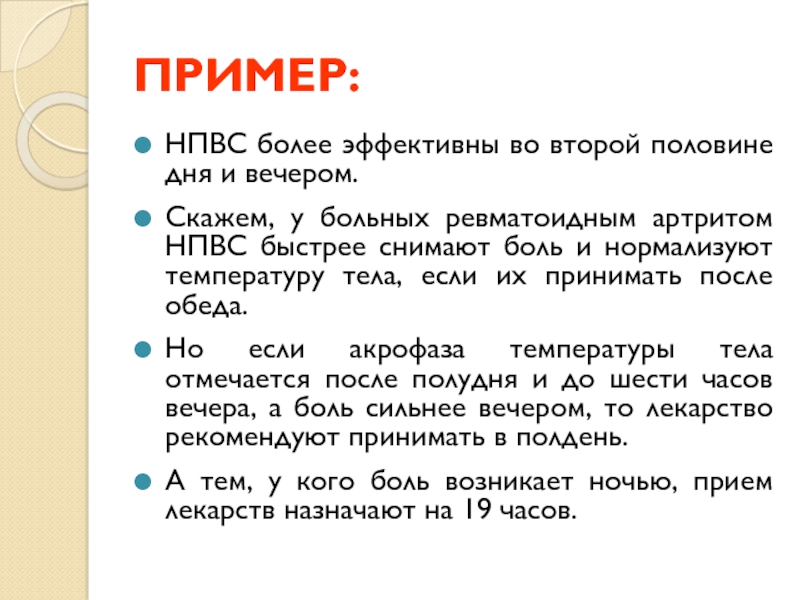 НПВС более эффективны во второй половине дня и вечером.