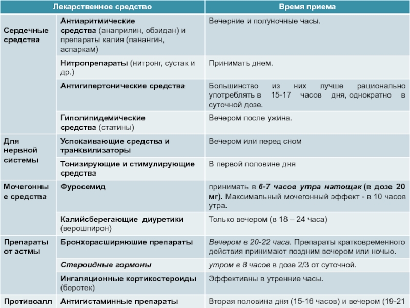 Слайд 16Советы хронофармакологов