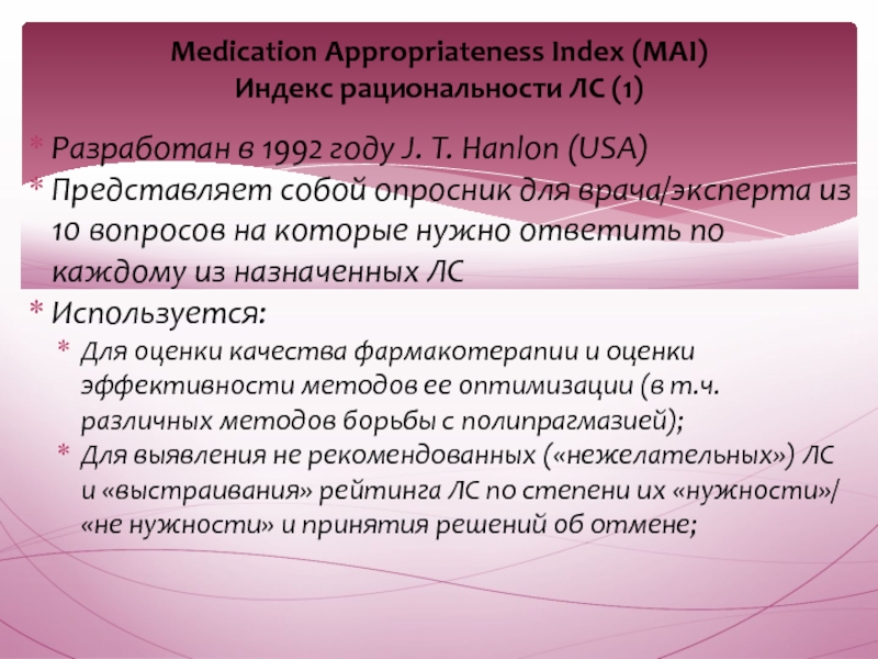 «Ограничительные» перечни ЛС- критерии не качественной фармакотерапии