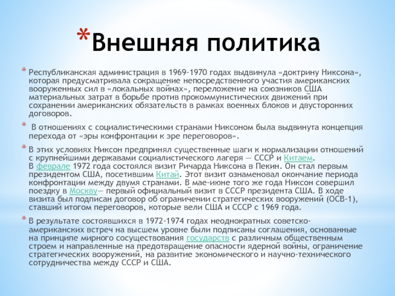 Крупнейшими внешнеполитическими шагами администрации