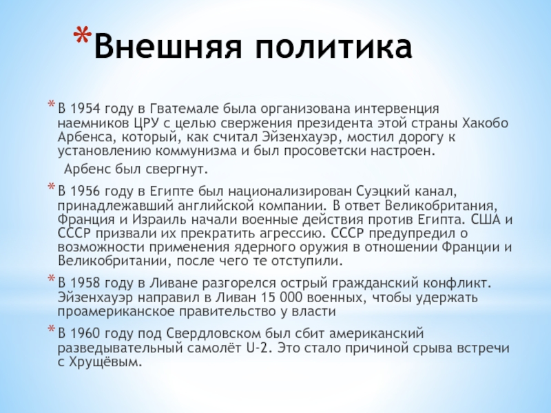как считал Эйзенхауэр, мостил дорогу к установлению коммунизма и был просоветски настроен.