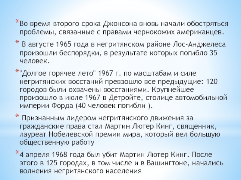 Слайд 21Во время второго срока Джонсона вновь начали обостряться проблемы, связанные