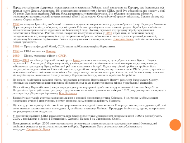 Слайд 10Народ з ентузіазмом підтримав неоконсервативне звернення Рейгана, який випередив як