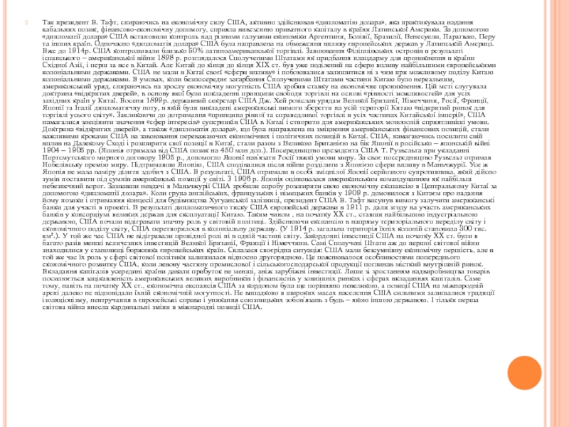 Слайд 5Так президент В. Тафт, спираючись на економічну силу США, активно