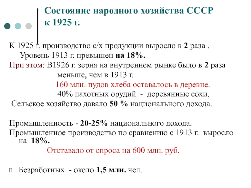 Сельское хозяйство - менее 60% от уровня 1913 г.