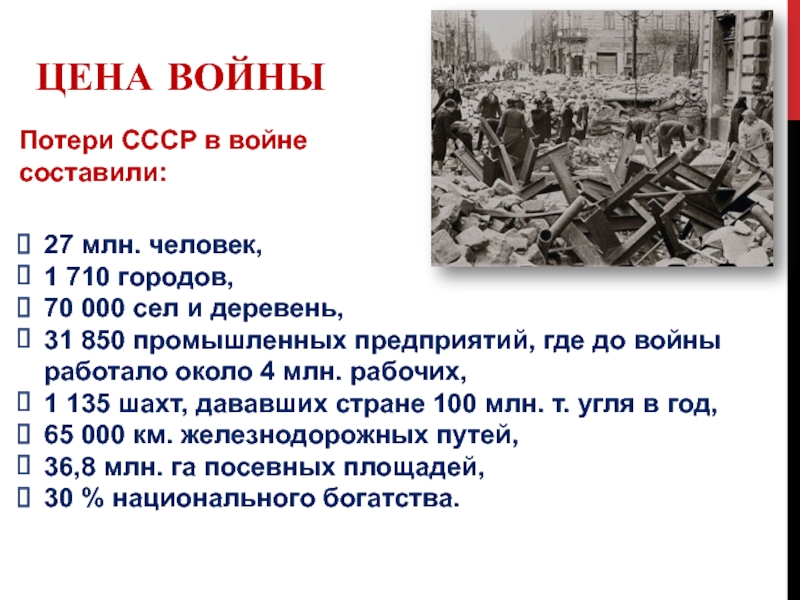 Потери СССР в войне составили: