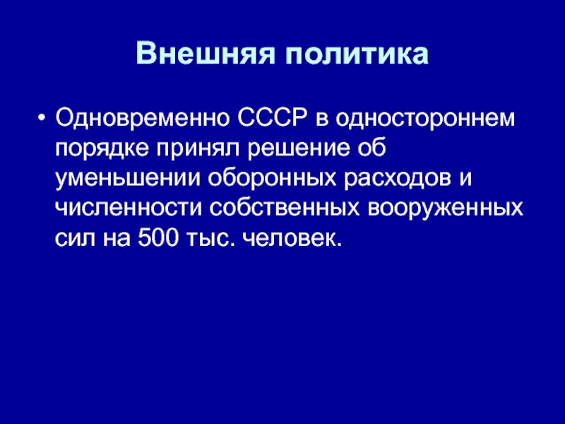 Одновременно СССР в одностороннем порядке принял решение об уменьшении