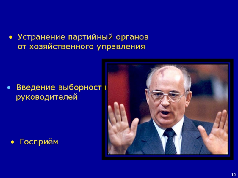 Слайд 10Устранение партийный органов от хозяйственного управления