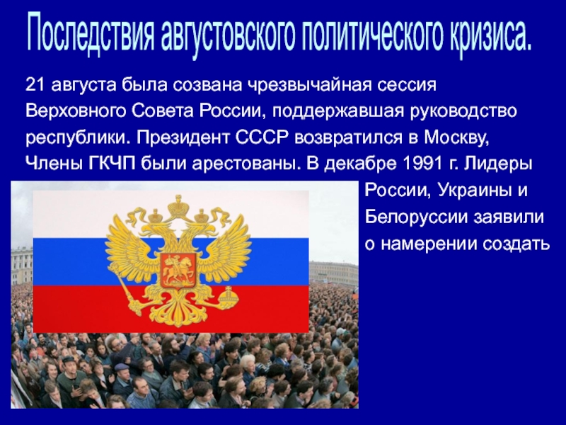 Слайд 44Августовский политический кризис 1991 г. и его последствия